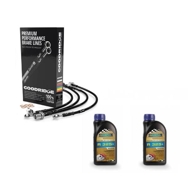 Aprovecha nuestros packs de frenada y consigue un gran ahorro. Pack compuesto por latiguillos metálicos Goodridge negros y dos botes de líquido de altas prestaciones RAVENOL R325+. Indicar el modelo de MINI al realizar el pedido!